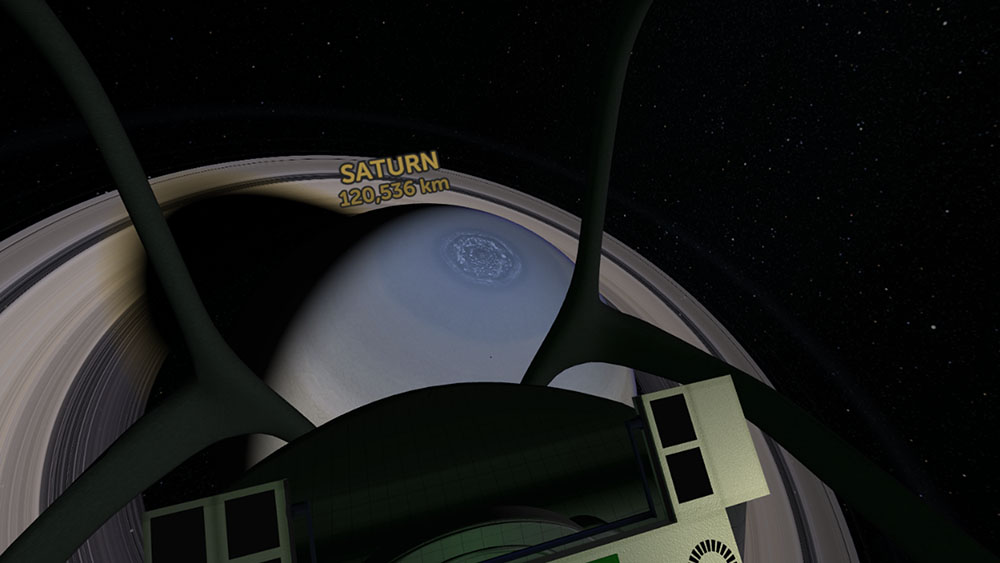 - The “Real Distance Viewer” is the third new feature at most tour stops. This one momentarily takes you out of the tour and into a preset scenes where the player gets to see planets and moons at their real sizes and distances. As an example, in one scene this sheds light on how big Neptune is in the sky if you were to be at Triton in reality, and another scene demonstrates exactly how far Triton is from Neptune. The player can also toggle distance values on and off. There is currently one scene with a cinematic sequence, and some have appropriate music.