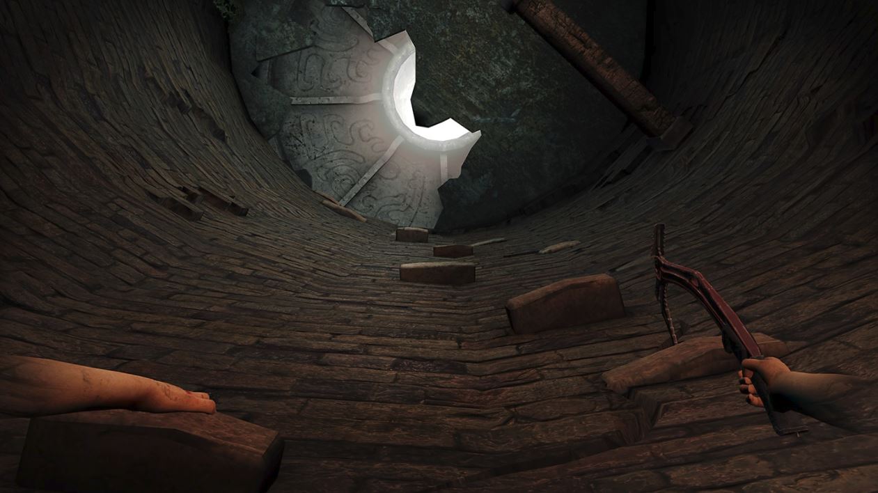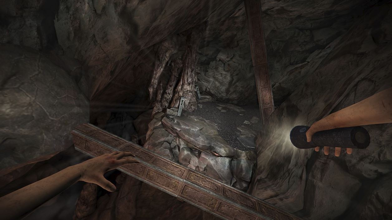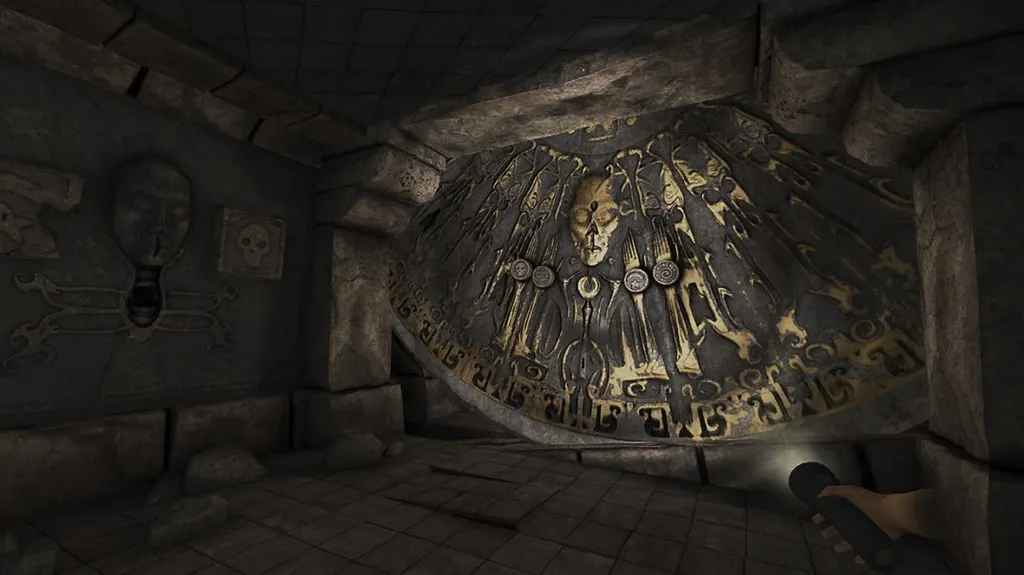 Here we have Tomb Raider VR: Lara’s Escape instead, which is an original piece of content for the Gear VR in the Oculus Home store that pits you in a first-person escape-room style setting in which you must explore an ancient tomb using your flashlight and then climb out of the depths with your climbing axe. Once again it’s painfully short, but at least the production values aren’t terrible (especially given the mobile-based Gear VR platform).