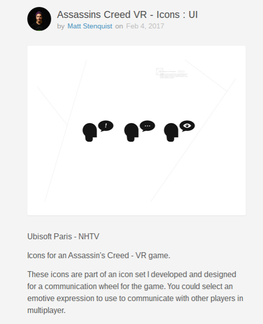 Update: Matt Stenquist, the designer of the icons uncovered yesterday, has taken to Twitter to explain that his work was a collaboration between Ubisoft and his university, and not an official project. No Assassin’s Creed VR yet, then.