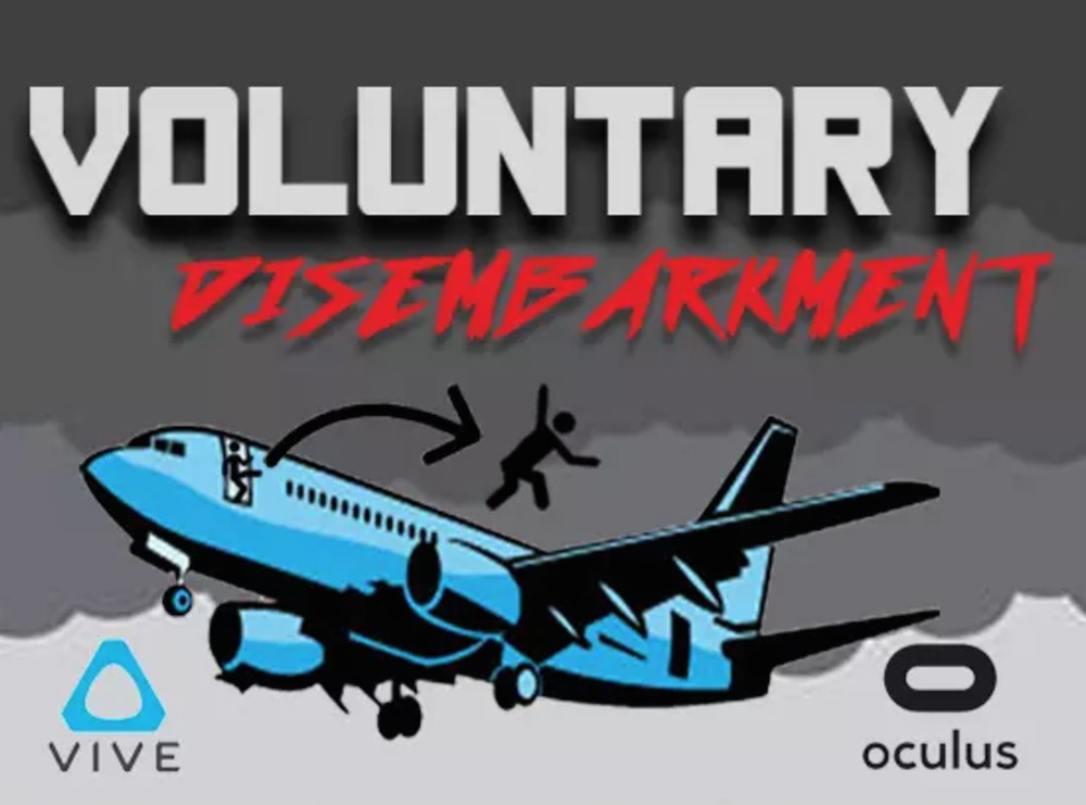 Voluntary Disembarkment is a virtual reality game where you & your security team must stand united as you voluntarily eject overbooked passengers you randomly select to comply. Search the plane for volunteering passengers, knock them unconscious, and escort them off the plane… as per company policy.