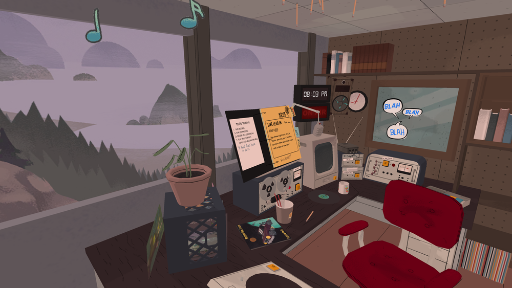 “The wild thing about VR is that the more real it feels the more aware you are that your interactions are artificially limited,” said Green. “When the visuals are convincing, you can’t help but want to reach out and touch things, which of course becomes a pretty unsatisfying desire. In these early stages of VR development there’s a kind clumsiness to the experience of playing in VR that can be pretty endearing when developers lean into it. We were excited to make a world that felt like a comic book, with hand drawn surroundings that you could hang out in.”