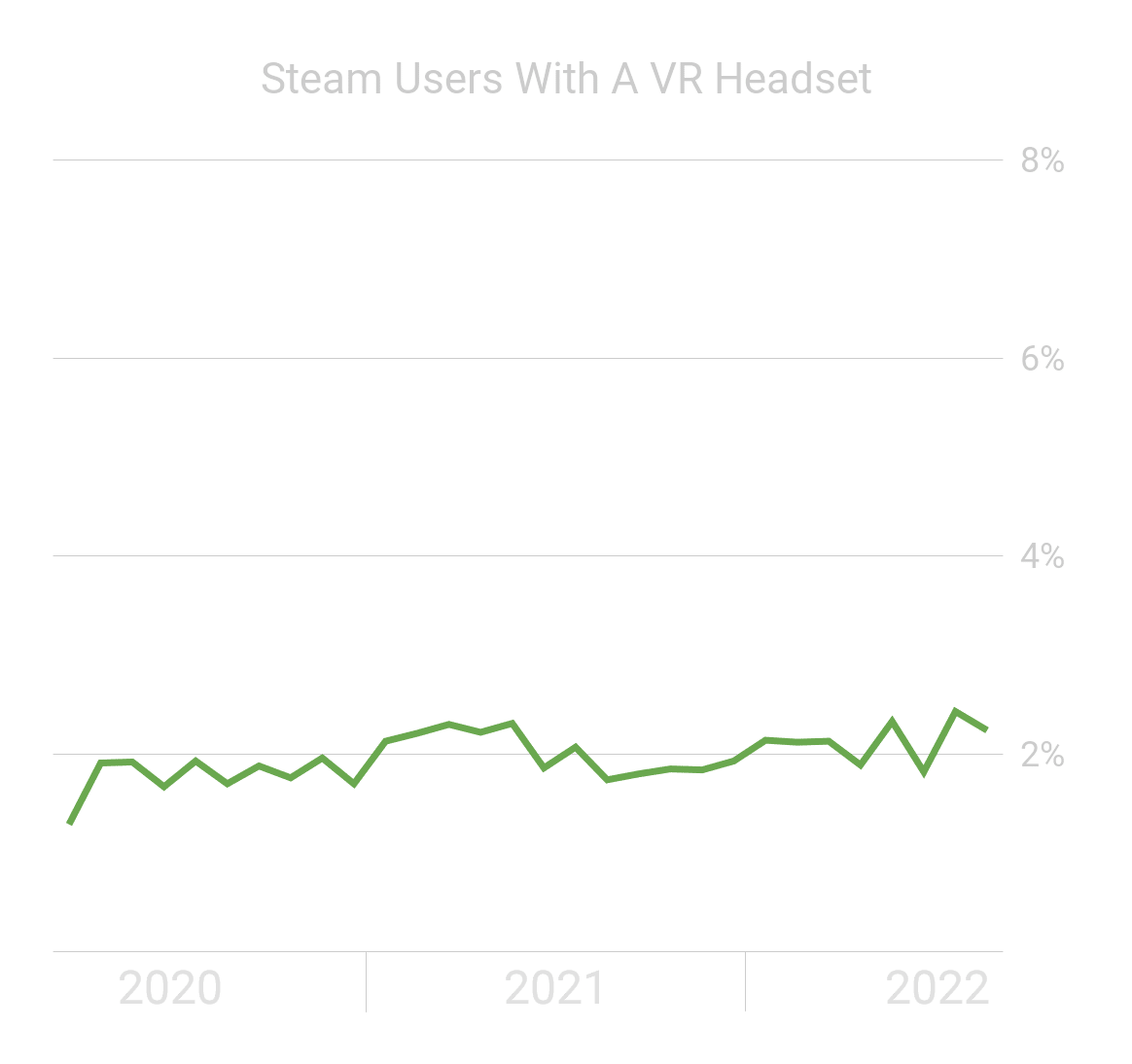 The Hardware Survey is offered to a random sample of Steam’s userbase each month. If you choose to accept, it uploads your PC specifications and peripherals. Before March 2020 the survey relied on headsets being connected via USB at the time of sampling, but Valve changed it to scan your SteamVR logs from the past month. Companies like Meta, Valve, & HTC don’t reveal hardware sales figures so it has been the most reliable indicator of PC VR’s adoption.
