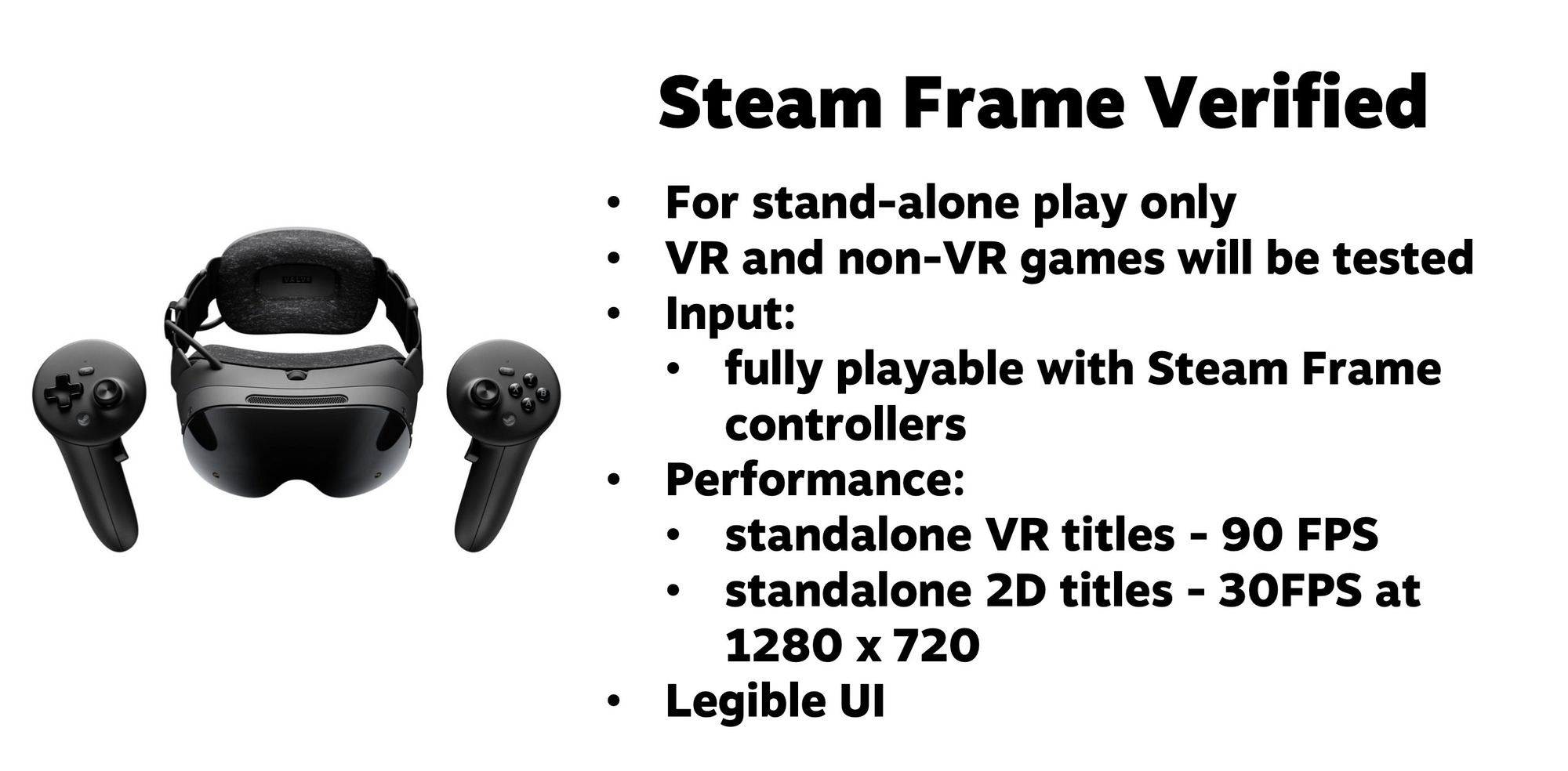 Valve announced the specific criteria for VR titles to receive the 'Steam Frame Verified' label on the Steam store.