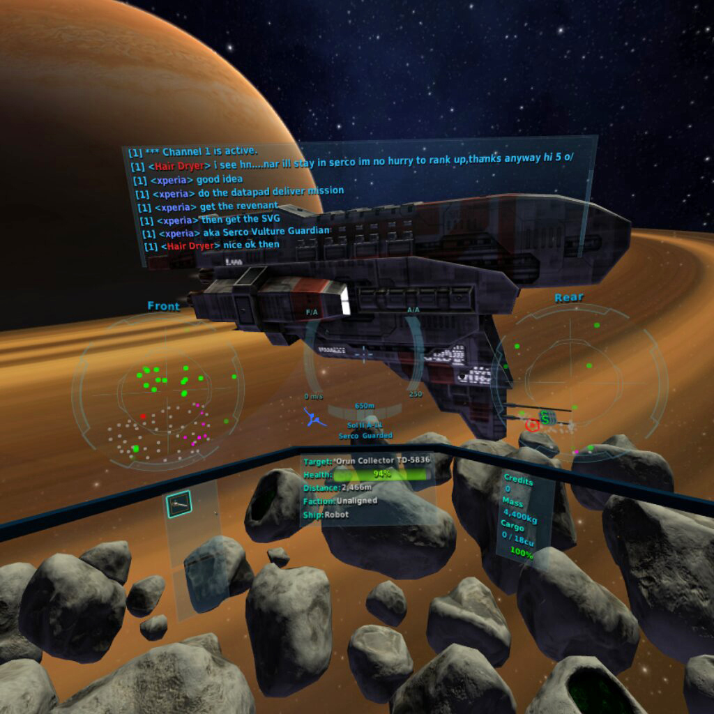 Worth noting is that since this is an RPG as well as an MMO and space shooter, there are more moving parts here than you’ll find in other shooters on Gear VR. There is a heavy focus on menu navigation, progression, communicating with other players, trading, mining, and more. It’s far from just being about watching stuff blow up, so don’t exepct full-action at all times. Definitely make sure you go through all of the tutorial.