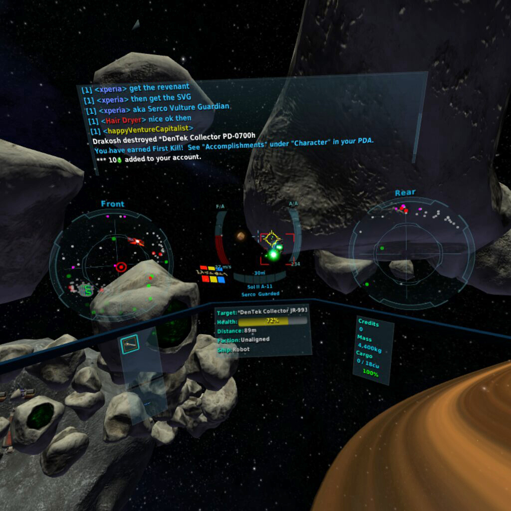 That’s a real doozy of a headline, isn’t it? Vendetta Online [official website,] a game you may have not even heard of, released on Gear VR this week and sports not only expansive, space-based combat, but it’s also a fully connected MMORPG. Additionally, it’s cross-platform, meaning when you’re playing on the Gear VR, you’re also playing with mobile on PC, Mac, Linux, and even mobile devices all at the same time.