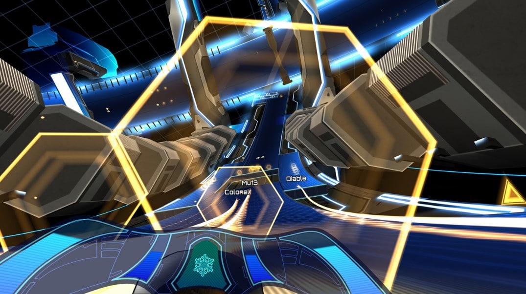 In Void Racer: Extreme, you steer the bike with only one hand by rotating the controller while pulling the trigger to accelerate. You can do this while resting your arm on your lap or a table if you want, but I found it far more fun and immersive to reach out into the air with both arms and lean my body from side-to-side as I played. For me, that made a big difference.