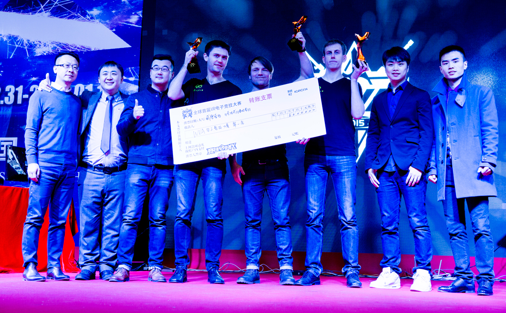 The semifinals were played best of 3 rounds, and finals best of 5. First place took home 60,000 RMB (approx. 10K USD), second place took home 30,000 RMB (approx. 5K USD), and third place 10,000 RMB (approx. 1.5K USD). After about 2 hours of gaming, Team Estonia took home the first VR eSports champion title.