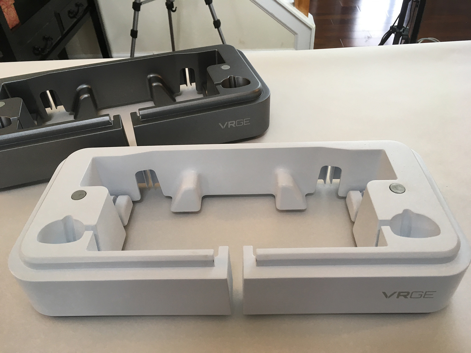 The folks at VRGE sent UploadVR two production prototypes, very similar to the ones shown in the video above, and I can thankfully report that it exceeded my expectations. It’s hard to judge build quality from a video, but the units were extremely sleek and attractive. They feel much weightier than they look, which is great considering they’re designed to support relatively hefty and expensive VR HMDs. The rubber feet on the bottom kept them still on my desk when not in use and the wall mounting process was very simple.