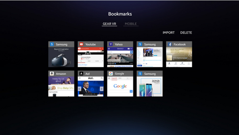 The app also appears to have voice recognition built in so you can search without having to type with some awkward face keyboard (which is also included as an option). The app seems to be separate from your phone’s browser, but appears to have the ability to import bookmarks from “mobile.” Perhaps this is for a future where WebVR apps work with the Gear VR, something VRML co-creator Tony Parisi thinks will happen in the future. 2D, 3D and 360º video playback also appears to be a feature of the app as well, making it a fairly complete browser experience built for VR.