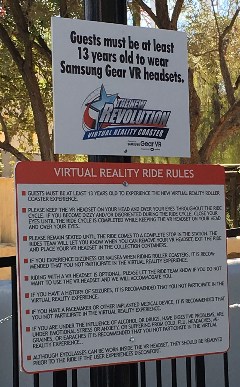 Four times through the VR experience at Magic Mountain by two different people resulted in no discomfort. The acceleration and twists of the ride still gave the unmistakable sense of moving fast and, combined with the synced visuals in the Gear VR, provided an exhilarating alternative to a traditional roller coaster.