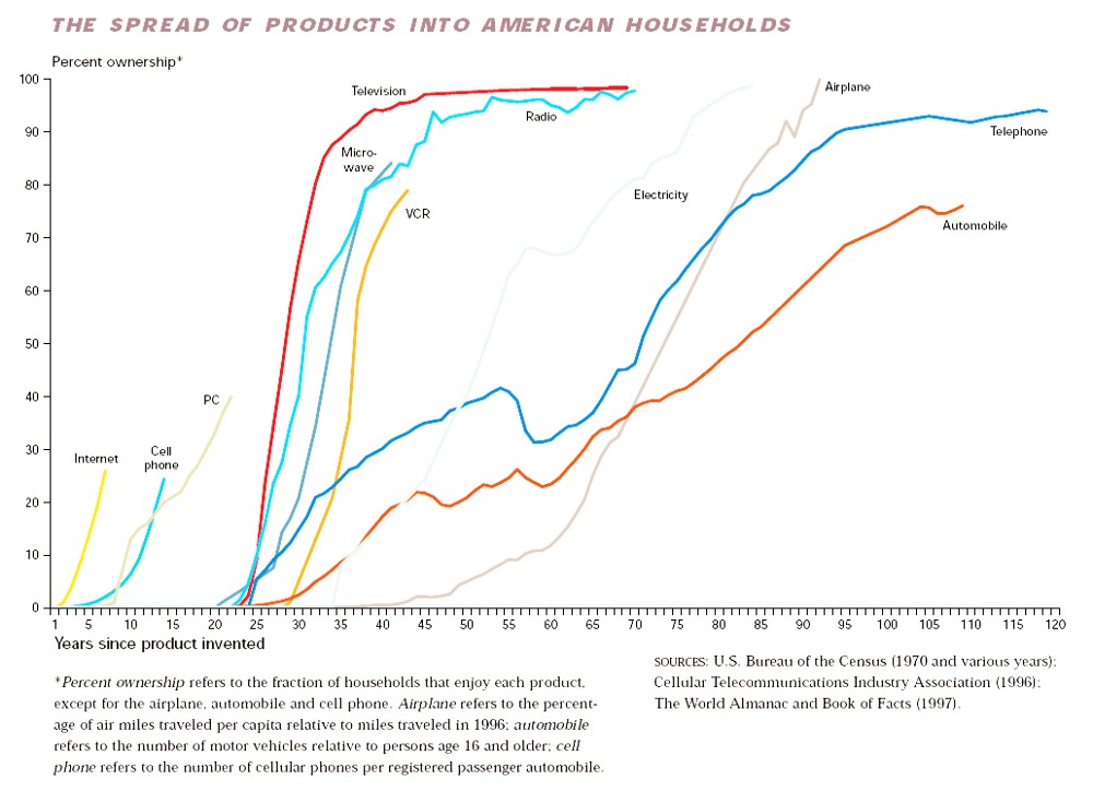 Matter of fact, every new technological innovation followed a similar trajectory of adoption. A recent post on r/oculus does a good job of putting technology adoption cycles in perspective. Look at the adoption of cars, internet, TV, cellphones. Historically, technology adoption cycles are getting shorter and shorter but even cellphones took a decade to reach 30% of households. What’s important to remember is that technology adoption is not linear (it’s exponential), but the expectation of many is that is. As a result, adoption starts slowly but then grows much faster than anyone expected!