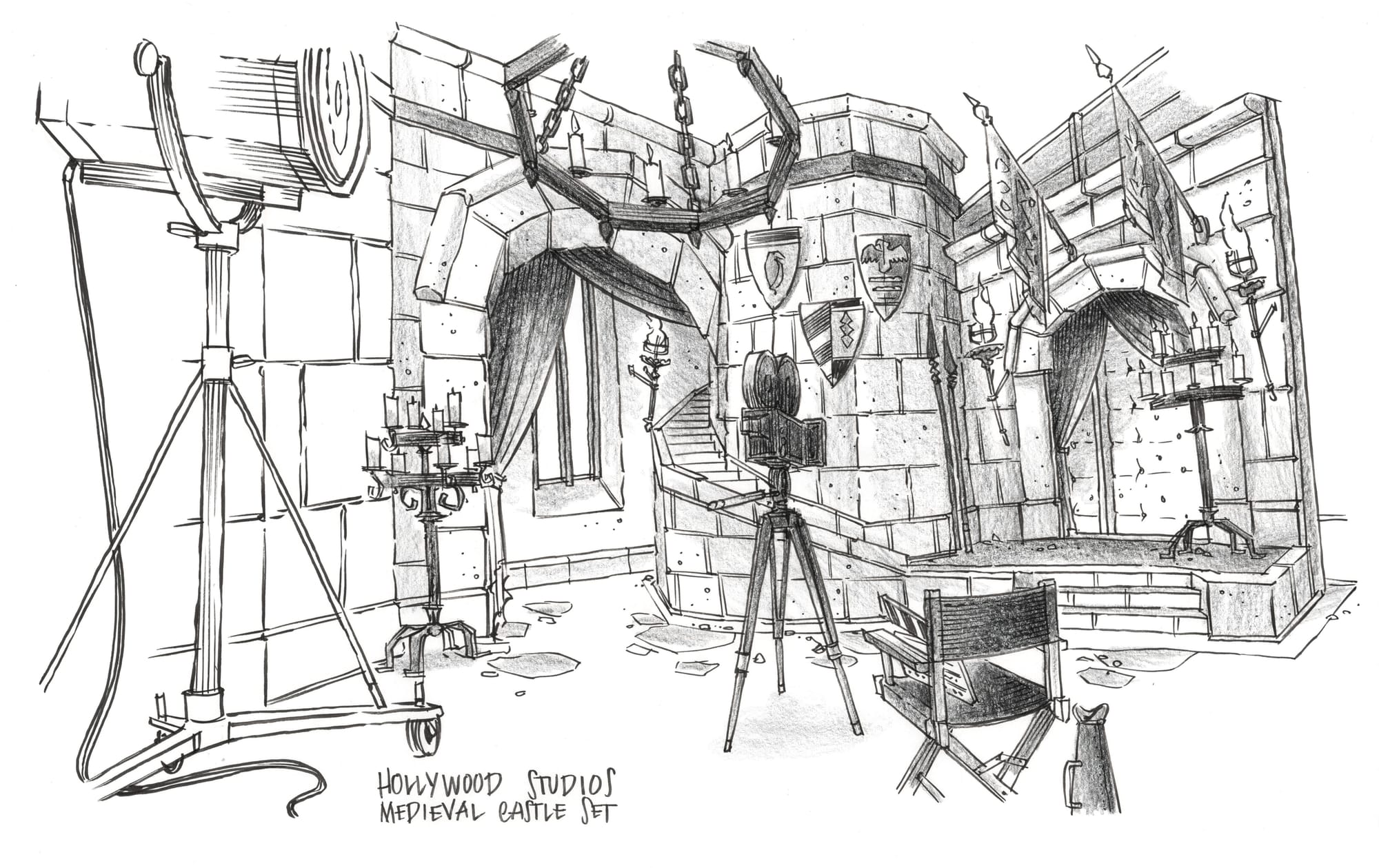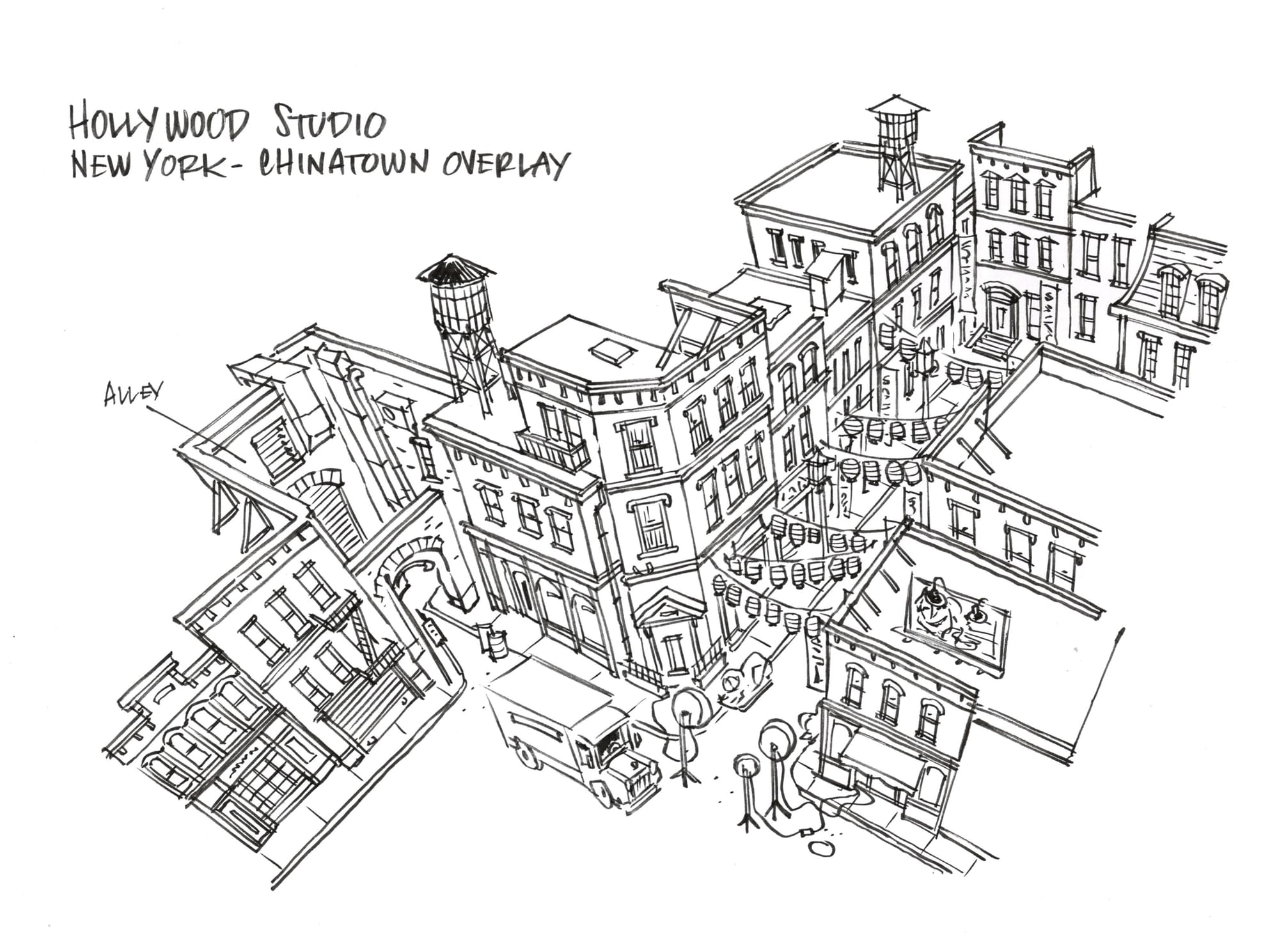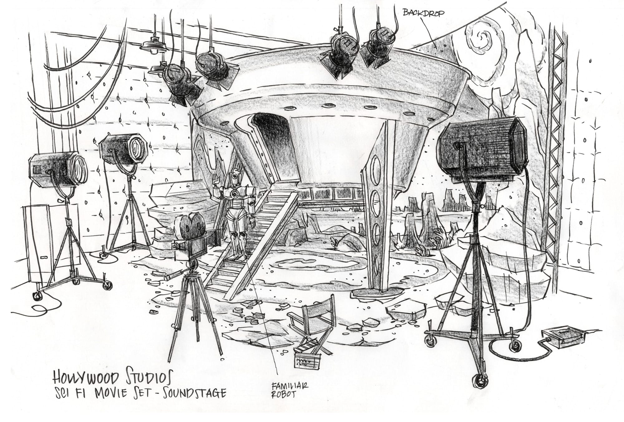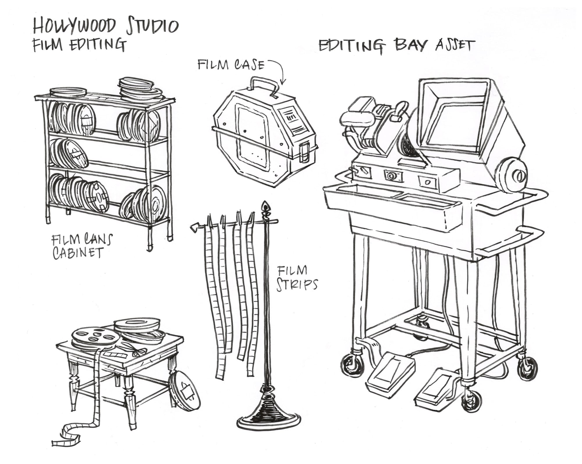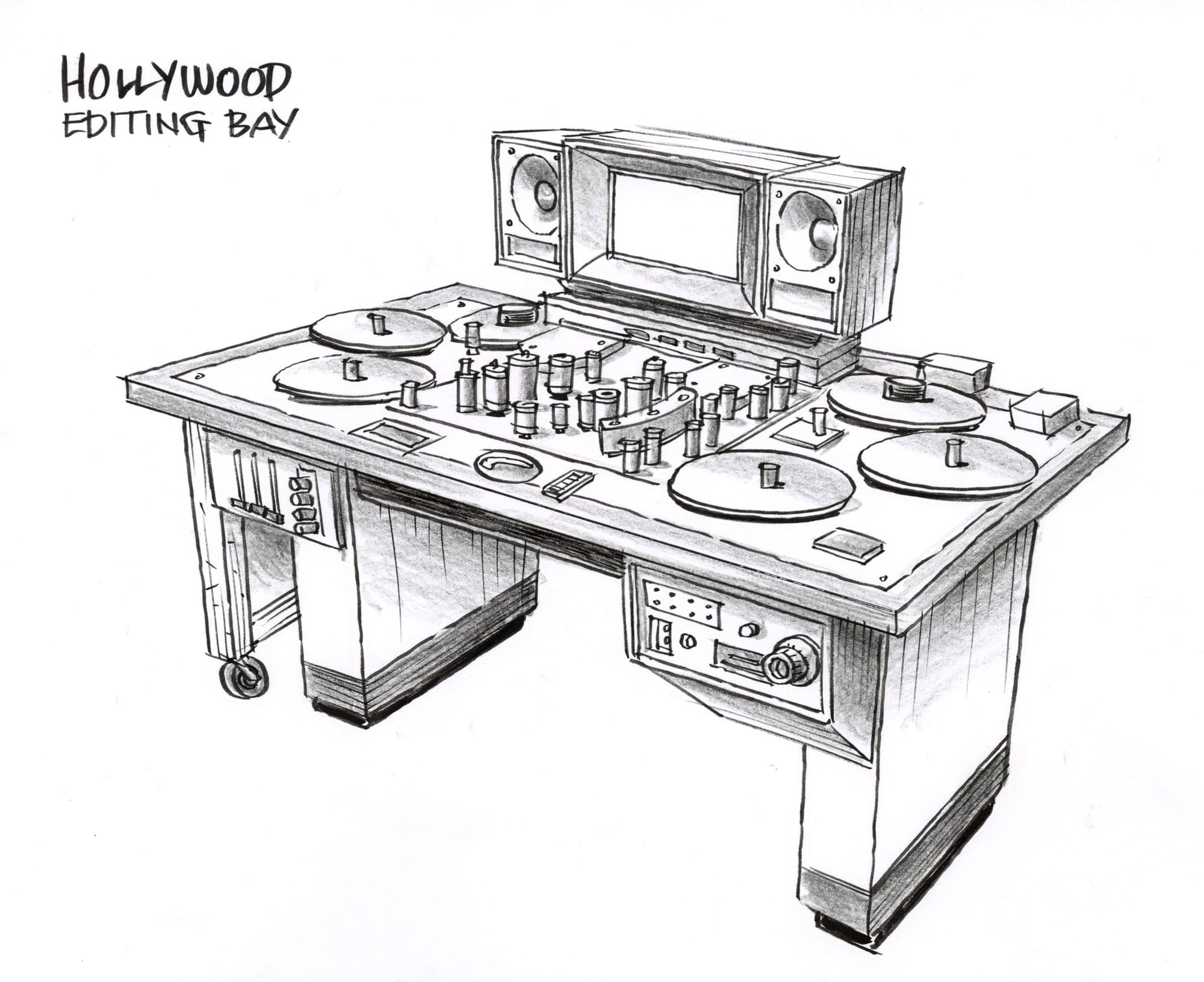 Don Carson: Probably my absolute favorite part of the process is the research part and I tend to research by drawing it and so I got to do a lot of research on the sort of vintage equipment that was used. So the editing machinery, the Foley and sound props. That was my favorite bit is the you know what are we going to fill this with? Always with this sort of keeping in mind what the audience is going to experience. You want to give them something that's going to be interesting. Kind of make them want to go find out more about it, but also you don't want to to be wrong. You don't want to foolishly recreate a Venice that doesn't exist. You want it to be something that people go, "Yeah, that's how I felt when I was there."