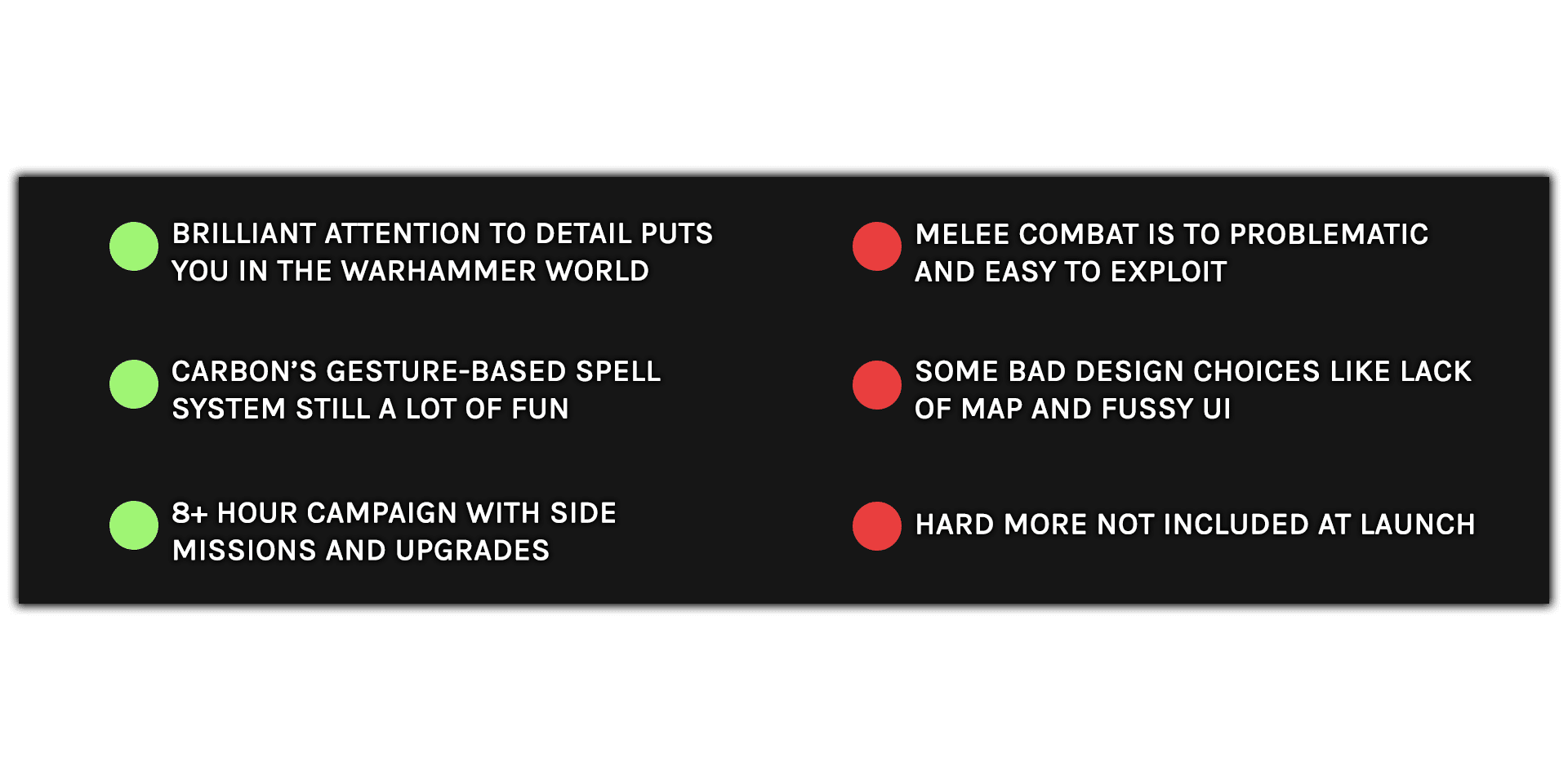 And what Carbon does well it does very well in Tempestfall. Fluid gesture-based spell-casting once again meets meticulous attention to visual detail, and the studio even pushes itself with new elements like a Metroidvania-style overworld and side-dungeons. But it’s also an inconsistent experience with a lot of bugs and UI issues. Not to mention that the Warhammer universe is inescapably more physical than the fire-casting, shield-throwing safety of The Wizards series, and that’s where Tempestfall really trips up.