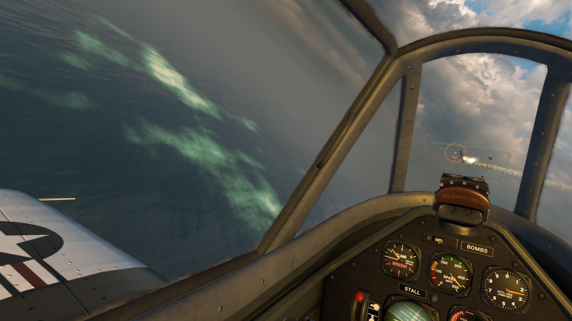 Like Ultrawings and VTOL VR, Warplanes lets you directly interact with a virtual throttle and stick using your VR controllers.