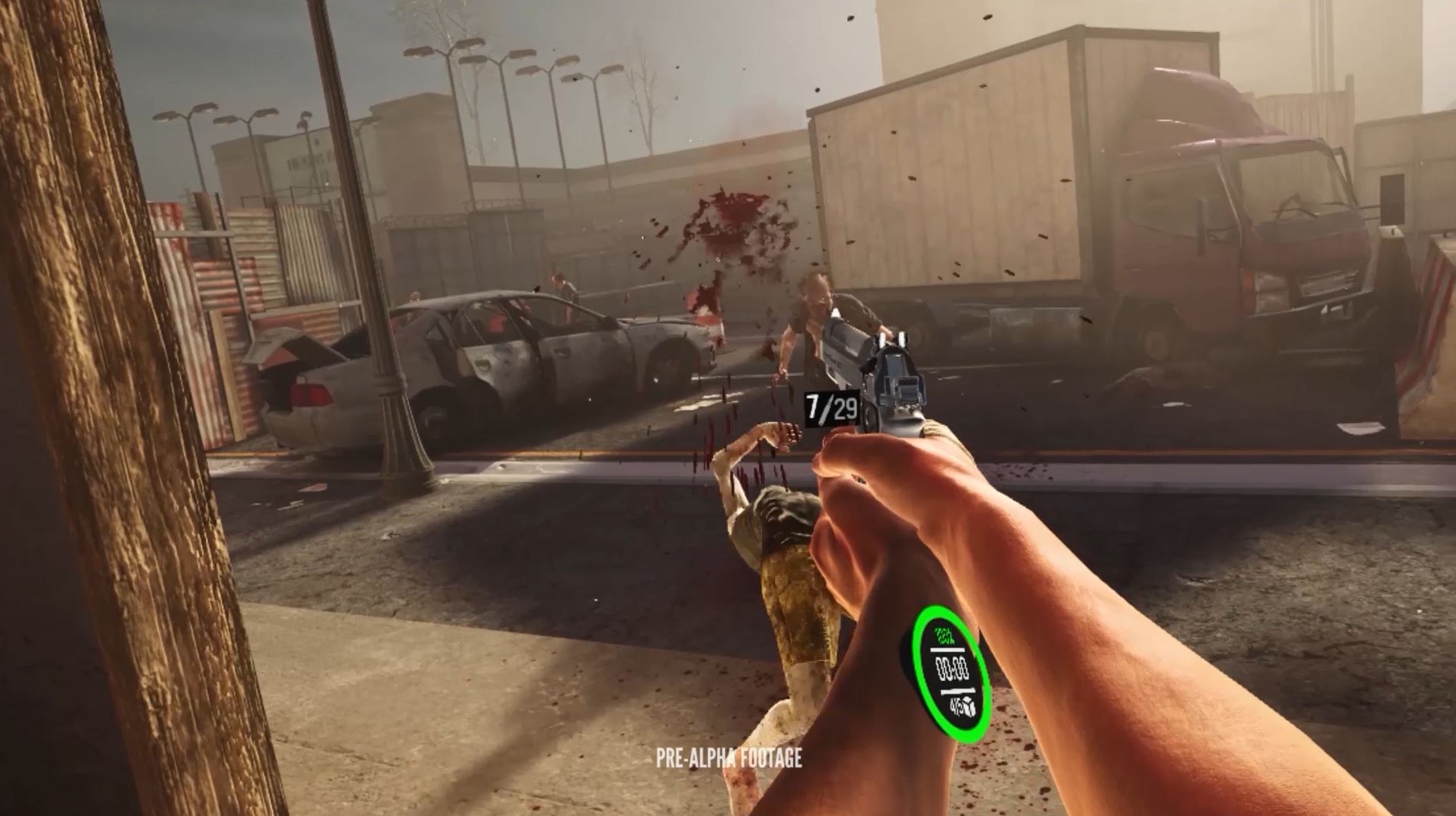 As expected, there is a heavy focus on blood, gore, and dismemberment. I actually got the chance to try out an early build at GDC earlier this year that was just a white dev room for combat testing. I picked up some guns, swords, a bat, crossbow, and more and got to try them out on stationary zombie characters.