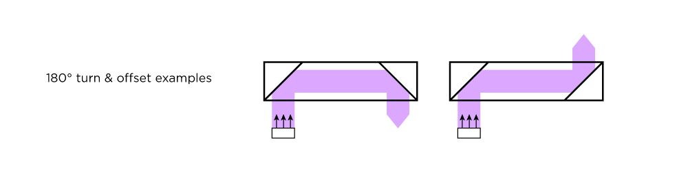 Now imagine two of those 90° prisms set side by side. In this configuration one can turn an image 180°. Alternatively, two 90° prisms can also offset a display turning it back in the same direction. Shown here in its most simple form, this turning of the display is an important principle, as we move onto waveguides.