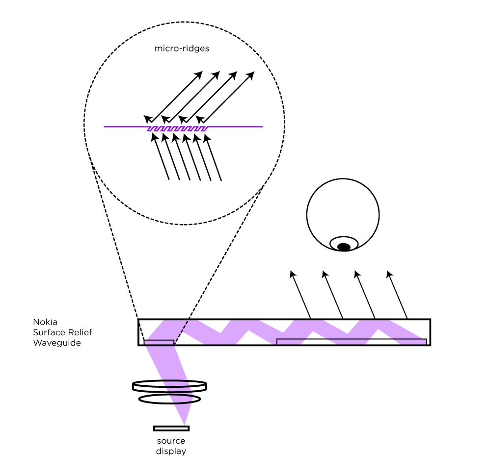A surface relief waveguide of this kind was patented and first commercialized by Nokia.
