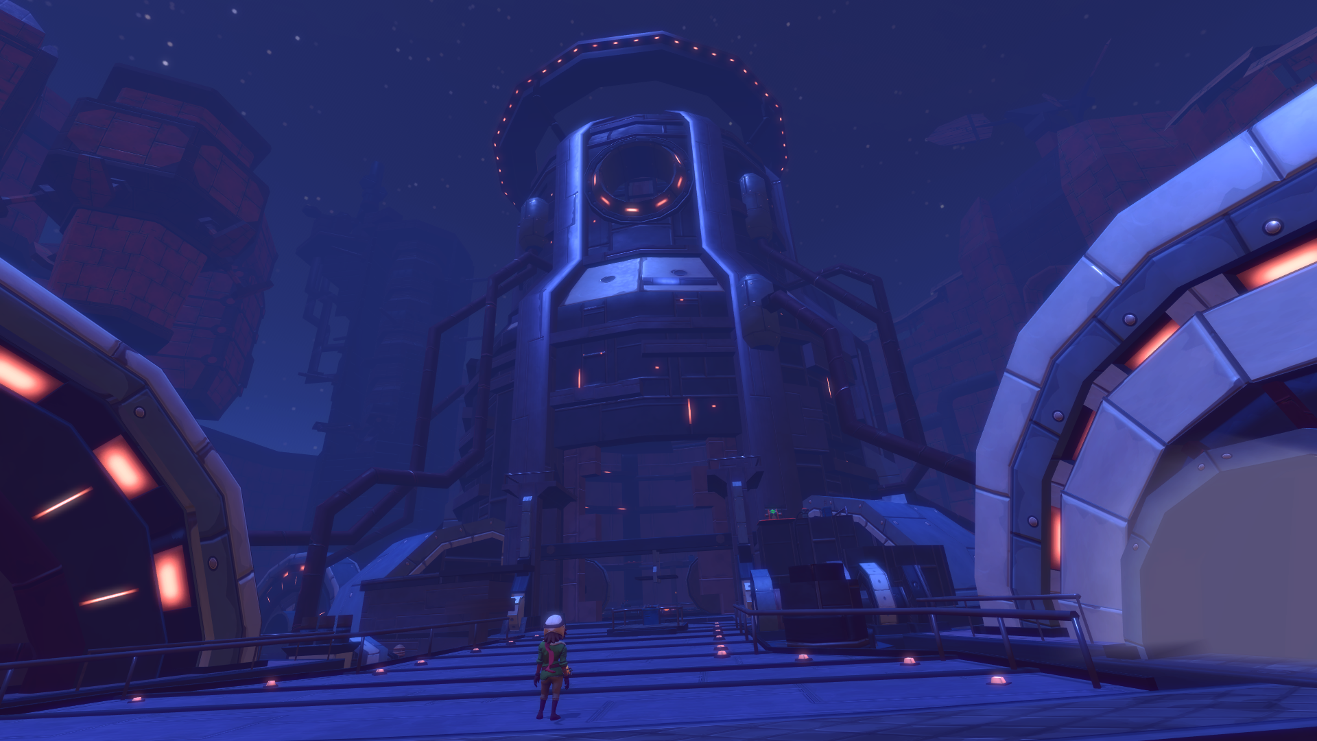 Wayward Sky has a cartoony appearance, with colorful robots and clean environments. The camera is usually third-person, positioned above you, and somewhat distant from the game’s protagonist, Bess. You move her through a miniature world, exploring sections of this floating fortress, from a perspective similar to Lucky’s Tale for Oculus Rift.