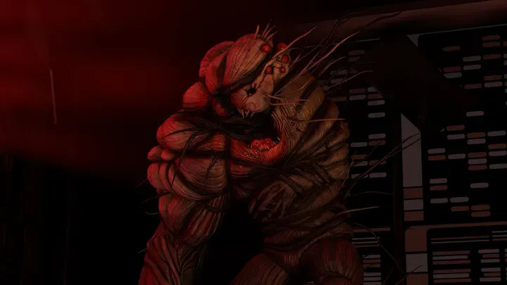 You are a Vulcan Starfleet officer on a covert mission aboard the Federation starship U.S.S. Lumen. Once aboard, you find that the crew is missing or killed, and a deadly entity has infested the ship. Before long, you are infected, and as the entity mutates your body and warps your mind, you gain dangerous new abilities but lose your grip on reality.