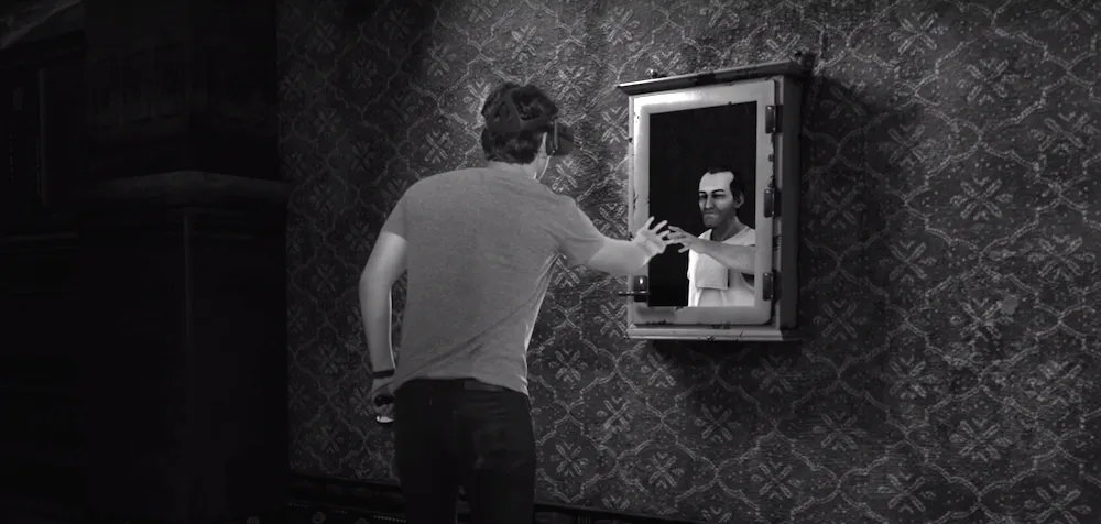 I look into the mirror and the reflection of a very battered, and very distraught, old man stares back at me. I turn my head and he turns his. I raise my chin and his eyes match my gaze – complete with the classic “what’s on my chin” facial expression that all of us do. The effect is rendered so perfectly that I can sense my identity shifting from inside my virtual reality headset. I begin to feel as if I am this poor man. And I’m in a lot of trouble.
