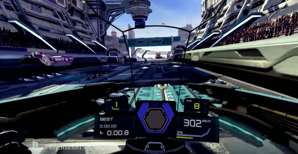 That’s largely thanks to just how polished Wipeout is in VR. Though you can play from the more traditional third-person perspective, this is the first Wipeout game that really feels at home in the cockpit view, delivering that same kind of fantastical curiosity you experienced when you first jumped into a ship in EVE: Valkyrie, or found yourself in the driver’s seat of DriveClub VR. On paper, it’s all very similar; you still speed around tracks, air braking around tight corners and memorizing individual layouts of each event, then trying to hit as many speed pads and weapon pick up points on repeat laps as you weave in and out of shortcuts and highways.