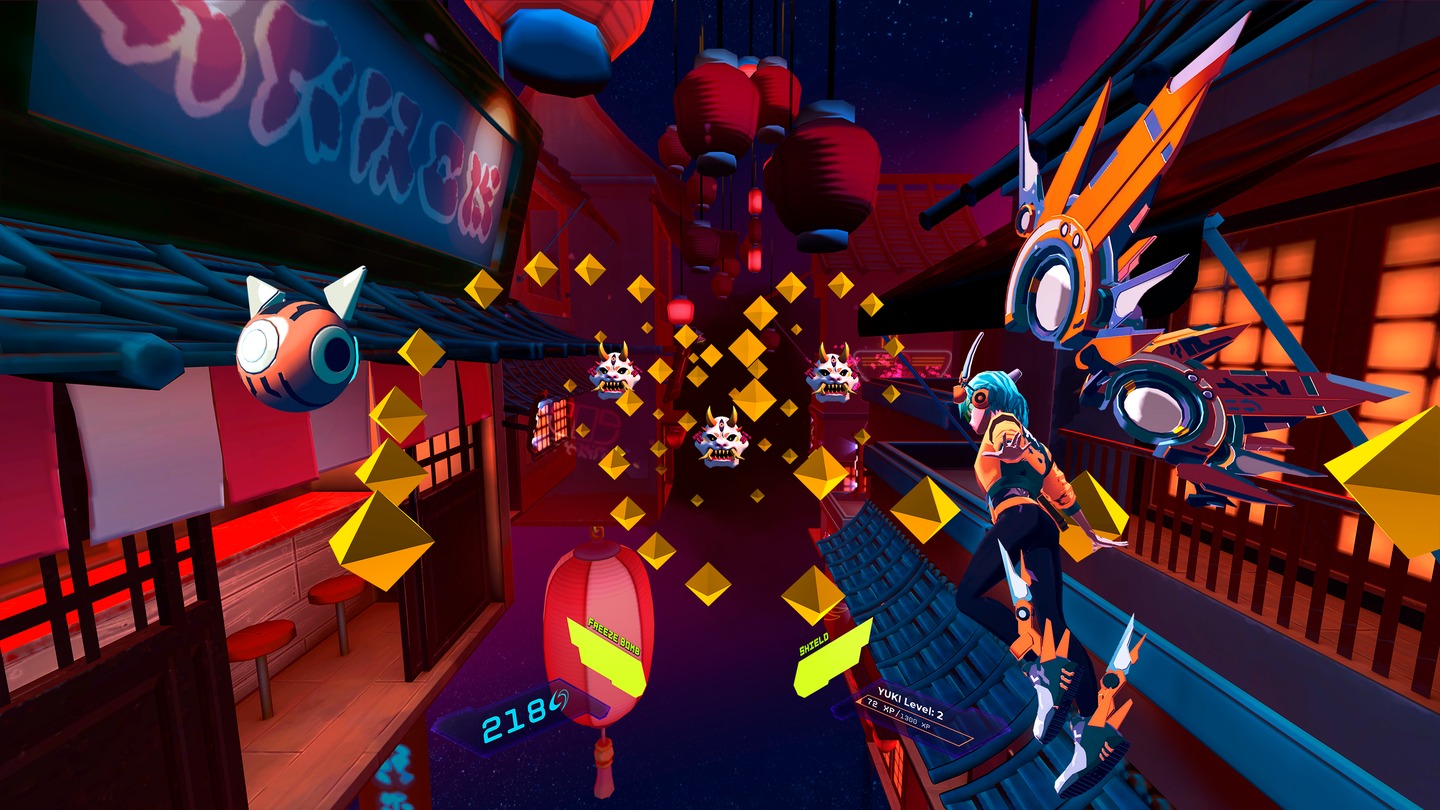 Shmups were always a strange contradiction of intensity and zen gaming, requiring precise reflexive movements and utter concentration, but putting that gameplay into VR makes for an astoundingly multi-faceted play experience. Yuki requires players to be aware of everything around them, while making sure each hand is accomplishing a different goal. You don’t have to use the drone. Yuki can collect everything herself, but as crowded as the screen gets with danger, collecting things with the offhand is a welcome ability.