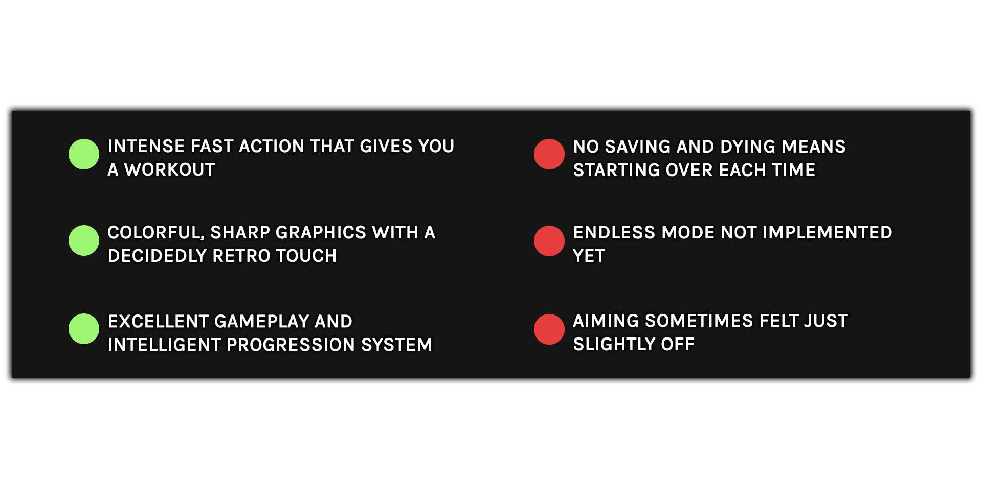 A shmup in VR is, for fans of this nostalgic genre, a brilliant idea. Yuki was clearly made by people who loved those old-school games. Yuki nails the intensity and feel of a proper vertical-scrolling shooter, the rogue-like aspects add a substantial layer of character progression, and the random generation elements keep things exciting.