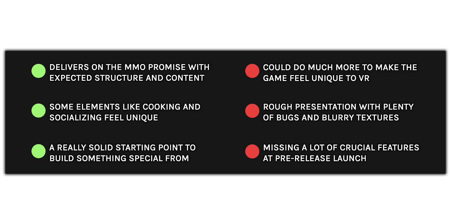 And that’s clearly what Zenith wants to do, not just routinely transplant a popular genre into headsets, but fully dissect, study and then re-piece the MMO to fit the medium much more suitably. It wants to take meaningful steps towards an experience like a Sword Art Online, not just name-drop such inspirations in hopes of a quick cash grab. At launch, it does at least some of that very well, but there’s a long way to go before Zenith really achieves those lofty ambitions.